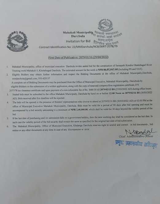 नदिजन्य पदार्थ लिलाम बिक्री सम्बन्धी सिलबन्दी दरभाउ पत्र पेश सम्बन्धी सूचना